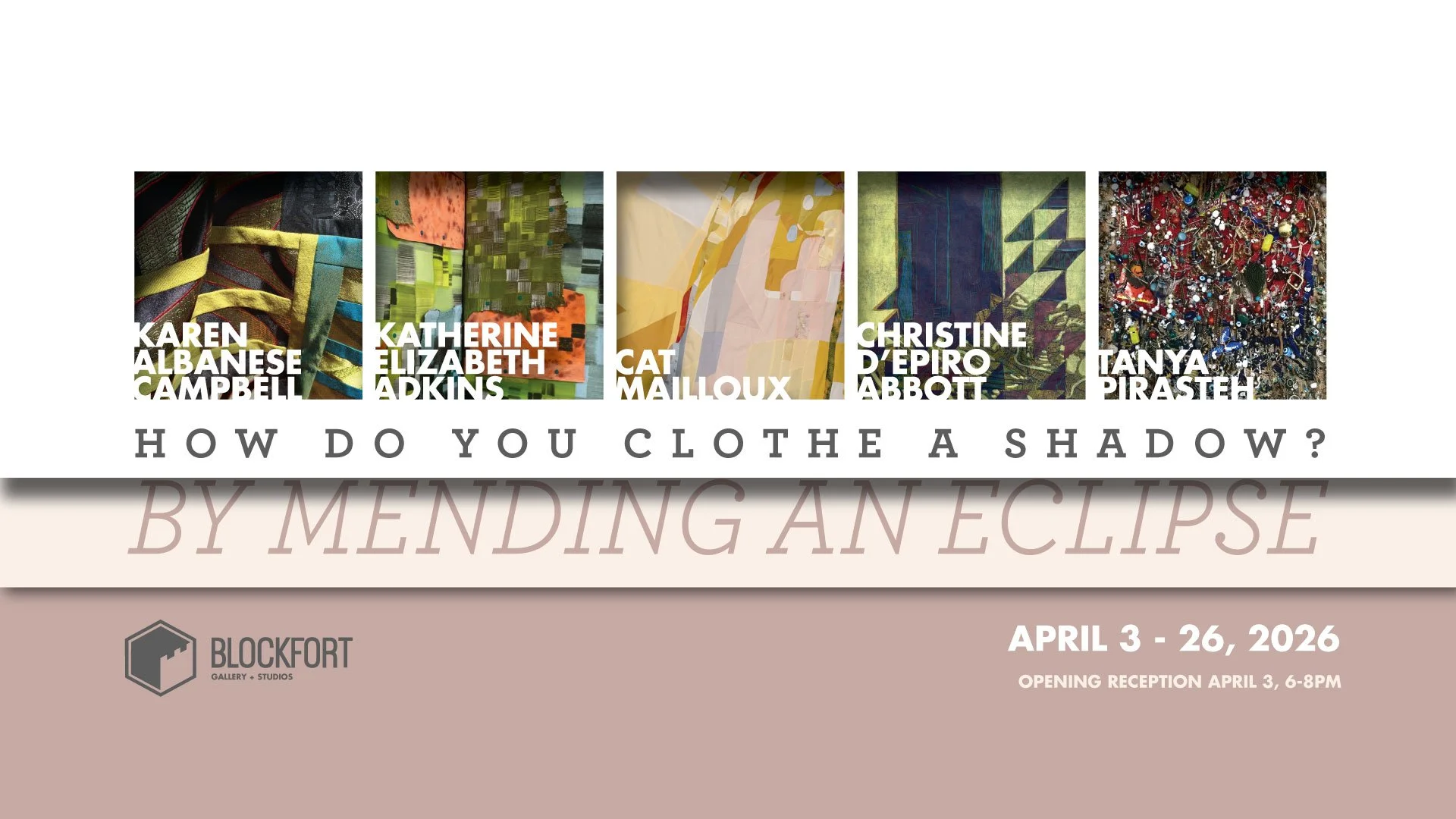 Featuring Columbus-based artists Christine D’Epiro Abbott, Katherine Adkins, Karen Albanese Campbell, Cat Mallioux, and Tanya Pirasteh, How do you clothe a shadow? By Mending an Eclipse invites viewers to reflect on the tension and harmony between fragmentation and repair.